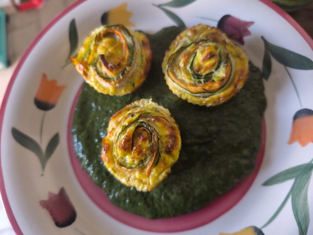 Rotolini di sogliola con zucchine su letto di cremina di patate